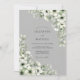 Ethereal white blossoms and delicate green foliage cascade across a soft gray backdrop, creating a romantic and serene atmosphere. This design evokes a sense of natural elegance and timeless beauty, perfect for a sophisticated affair. The subtle color palette lends a refined and understated charm.