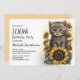 Invitación Gray Tabby Kitten Cat Sunflowers 100 cumpleaños