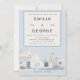 An elegant Greek blue destination wedding invitation inspired by traditional island architecture and soft Mediterranean tones.