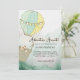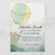 Share the anticipation of your new arrival with this adventurous, hot air balloon themed baby shower invitation. Design features a whimsical green and yellow hot air balloon. The joyous typography pairs harmonious fonts which are customizable by you!