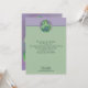 Invite a los huéspedes a celebrar el Día de San Patricio con esta invitación al personalizable, que incluye obras de arte en tonos pastel que representan tres trébol con hojas o rocas de champú en verde suave sobre un fondo morado mudo. El texto verde oscuro se coloca sobre un fondo verde más claro acentuado con un recorte circular de la obra de arte en la parte superior.