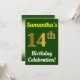 Invitación Green, Faux Gold 14th Birthday Celebration + Name