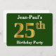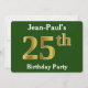 Invitación Green, Faux Gold 25th Birthday Party + Custom Name