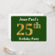Este diseño de invitación presenta el número ordinal "25" con un aspecto falso dorado. También tiene un nombre de personalizable y un fondo de color verde. Los detalles del evento en la parte posterior se pueden personalizar. Se podría usar para invitar a la gente a la fiesta de 25 años de alguien. [~Z0000013]