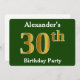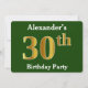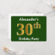 Invitación Green, Faux Gold 30th Birthday Fiesta + Custom Nam