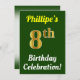 Invitación Green, Faux Gold 8Celebración de cumpleaños + Nomb
