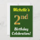 Invitación Green, Faux Gold Celebración del Segundo Cumpleaño