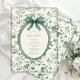 Pretty green vines with other greenery done in watercolors and gardenias flowing creating a lovely background for this vintage scalloped frame topped with a quaint bow and flowing ribbons. Perfect for any season wedding.