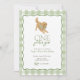 ¡Celebra tu pequeño "año dorado" con esta dulce invitación con tema de cachorro! Con un alegre recuperador dorado que usa un arco de gingham verde y un borde de gingham verde a juego, este diseño es perfecto para una fiesta de primer cumpleaños. Personalizar fácilmente el nombre, la fecha y los detalles del fiesta en su navegador, sin necesidad de software especial. ¡Una encantadora elección para los amantes del perro y las celebraciones de cumpleaños!