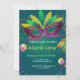 Green | Máscaras verde azuladas de mascarada Fiesta Mardi Gras Celebrar una máscara morada y el verde azulado fiesta Mardi Gras con esta divertida invitación con fondo verde y máscaras de máscaras de oro. Máscara con la decoración Fiesta Mardi Gras sobre un fondo de color esmeralda verde azulado verde oscuro con rsvp todo en una sola invitación.