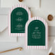 Featuring soft pink and white stripes, a deep green arched panel, and elegant tennis iconography, this modern itinerary card lists the full weekend schedule while coordinating beautifully with matching invitations, shot glasses, napkins, and party favors.