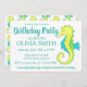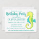 Invitación Green Seahorse Sea Horse Beach Birday Party
