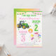 Invitación Green Tractor and Unicorn Siblings Joint Birthday