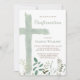 Invitación green watercolor cross Confirmation