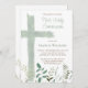 Invitación green watercolor cross First Communion