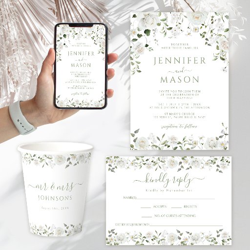 Invitación Green White Flowers Eucalyptus Rose Peony Wedding