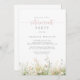 Esta verde invitación a la fiesta de retiro de flores silvestres es perfecta para un evento rústico. El diseño se compone de flores acuáticas rosas, rubias, amarillas y blancas, dispuestas en elegantes ramos.