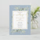 Invitación Greenery Dusty Blue Gold Script Boda de fotografía