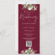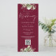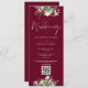 Invitación a una boda floral verde con una tipografía de escritura caligráfica elegante y tu sitio web boda código QR con un fondo rojo burdeos. Diseñado por Thisisnotme©