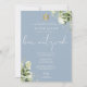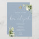 Invitación Greenery Floral Monogram Blue Bar Mitzvah