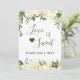 Greenery Rústico Floral El Amor es Dulce Tarjeta de Señal de Barra de Postres.