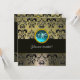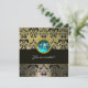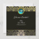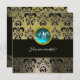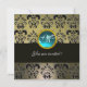 INVITACIÓN GRIS NEGRO DAMASCO MONOGRAMA, AQUAMARINA AZUL