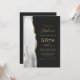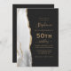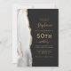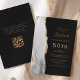 El borde izquierdo de esta elegante y moderna invitación a la fiesta de 50 años cuenta con un borde de batidos de color gris y blanco adornado con un purpurina de imitación dorada. El texto del personalizable combina la escritura a mano de color dorado, las fuentes de copperplate y cursiva sobre un fondo negro de pizarra. Añadir instrucciones RSVP en la parte posterior de la tarjeta, junto con un código QR que los huéspedes pueden explorar para responder en línea.