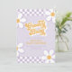 Groovy Baby Retro inspiró la invitación de Baby Shower con tipos de letra y daisies de estilo 70 y un patrón de damas.