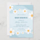 Invitación Groovy Dusty Blue Retro Daisy Floral Baby Shower