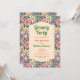 Flor verde, violeta, amarilla y rosa retro groovy sin fisuras patrón Invitación cumpleaños. Este diseño divertido y vibrante es perfecto para todo aquel que desee añadir un toque de estilo retro a su día especial. Con sus colores llamativos y su estampado floral, esta invitación seguramente marcará el tono para una celebración memorable.