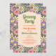Invitación Groovy Floral Verde Retro 40 cumpleaños