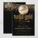Celebra tu despedida de soltera con estas invitaciones temáticas retro de "oro sólido". Esta invitación de despedida de soltera con bola de discoteca negra y dorada es personalizable con tus propios detalles. ¡Elige imprimirlas, recibirlas como descarga digital o ambas!