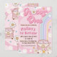 Groovy One Retro Daisy Rainbow Primera Invitación de cumpleaños