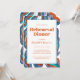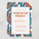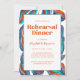 Invitación Groovy Retro Blue Wavy Boda ensayo Cena