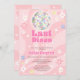 Consiga su ritmo con nuestra invitación Groovy Retro Disco Ball Floral Last Disco Bachelorette Invitación! Es un fiesta discoteca con tarjeta y la forma perfecta de entrar en tu fin de semana de soltera. Con un bonito ilustracion retro con bola disco de los años 80, flores hippie y estrellas blancas con retro groovy Last Disco en rosa retro pastel. ¡fiesta de la discoteca de soltera de los años 80!