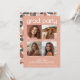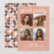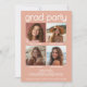 Divertido tipo de letra simple en un color de coral melocotón y blanco — Si estás teniendo una fiesta de graduación de grupo este año — esta invitación y invitación tiene 4 fotos y espacio para 4 nombres. La invitación a la fiesta está incluida en la parte delantera para que sea una invitación móvil perfecta para enviar a los amigos. La parte trasera de la invitación tiene un divertido patrón de media luna. Añade cualquier año para mostrar este diseño elegante y de moda. Esto se puede usar para cualquier graduado - escuela secundaria, universidad, escuela de posgrado, escuela de medicina o incluso escuela de comercio.
