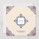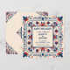 Tarjeta boho chic para guardar la fecha, floral geométrico, estilo arte popular boho, rojo, blanco y azul. Viene con área de código QR (se puede eliminar para revelar el patrón) y campos personalizables para nombres, fecha, ubicación y información de contacto.