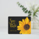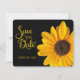 Tarjeta brillante y hermosa de "Guarda la Fecha" con girasol. Agrega la fecha de tu boda en la parte delantera y los nombres en la parte trasera. El mensaje en la parte trasera también se puede cambiar.