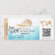 Avión Ticket Gold de la Boda de la Playa de Destino Avión de embarque Guardar la fecha con el icono del crucero con hojas tropicales. Añadir tu código QR