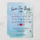 Calendario "Salven la Fecha" con corazón rojo en un faro acuático y diseño oceánico para un boda próximo. El texto es editable. El mes puede ser editado. Coloque el corazón rojo en la fecha de su boda. Se puede cambiar el fondo.