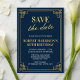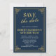 Anuncia tu celebración de aniversario con este elegante Save the Date Art Déco en azul marino y dorado. Perfecto para un cumpleaños número 80, este diseño sofisticado combina el anuncio y los detalles del evento en una tarjeta prestigiosa. Fácil de personalizar para tu día especial. ✨