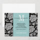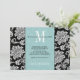 Invitación Guardar la fecha con monograma de damasco negro de