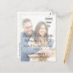 Anuncie su compromiso con esta elegante tarjeta postal de Invitación Save The Date Couple Photo Boda. Presentando una foto en el fondo con filtros especiales para dar un efecto romántico transparente —y una Cruz Cristiana que dice el hermoso y sentimental versículo de la escritura: Dos se convertirán en uno. Grabado/manuscrito negro. Realice los cambios necesarios en la foto/colores/texto/fuente mediante la herramienta Editar botón/Diseño. Añade tus detalles.