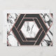Tarjeta de guardar la fecha de boda hexagonal con patrón de piedra de mármol negro y blanco falso e impresión moderna, elegante y chic con detalles en oro rosa. Este diseño clásico y sofisticado es perfecto para la pareja que se casa y es moderna y elegante. Personalice con su propio mensaje en la parte delantera, así como una inicial de monograma personalizada en la parte posterior. Todo el diseño de impresión de fotos.