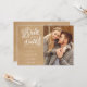 Esta tarjeta de guardar la fecha con letra manuscrita rústica y foto incluye su foto y una fecha de guardar en letra manuscrita encima de sus nombres, fecha y lugar. El reverso tiene detalles adicionales para guardar la fecha, incluyendo su sitio web de boda en un fondo kraft rústico. Diseñado por Thisisnotme©