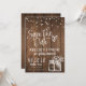Este diseño presenta un fondo de madera rústica con luces de cuerda colgantes y frascos de Mason vintage y flores. Personalice esto para cualquier ocasión, pero ideal para guardar la fecha de una próxima boda campestre.