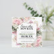 El anuncio de boda de flores rosadas rústicas le permite notificar a sus invitados que los planes de su boda han cambiado. El diseño cuadrado y elegante cuenta con un marco floral exuberante con rosas rosadas, flores de hortensias blancas y follaje verde y hojas. Todo el texto es editable para darle la máxima flexibilidad al describir su situación. También hay un bonito ramo de flores rosadas en la parte posterior.