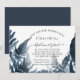 Plantilla totalmente editable por texto, invitación de boda. Esta tarjeta de "Guardar nuestra nueva fecha" puede informar a sus invitados que la boda ha sido reprogramada. La colección se mezcla y combina fácilmente con todos los colores y diseños de Frondas de Helecho del Bosque y Follaje de Hoja. Azul profundo naval con follaje de acuarela azul Delft y blanco. Derechos de autor, Audrey Jeanne Roberts.