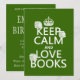 Esto lee guarda calma y ama los libros, en el estilo de la obra clásica guarda el poster tranquilo. Se adorna con las pequeñas pilas de libros que se sientan en las letras. Es un diseño hermoso y popular, que es amado por cada uno que ame los libros, si un lector o un escritor. Está disponible en una amplia gama de productos, haciendo los regalos maravillosos para los vendedores de libro, los bibliotecarios, los escritores y a cualquier persona que lea.