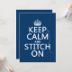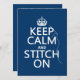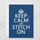 Esto lee guarda calma y cose encendido, en el estilo de la obra clásica guarda el poster tranquilo. Hay una aguja que perfora las letras, con el hilo colgando. Es un simple hermoso y el diseño de cogida del ojo que hace una gama de la diversión de los productos amados por cada uno que ame coser.